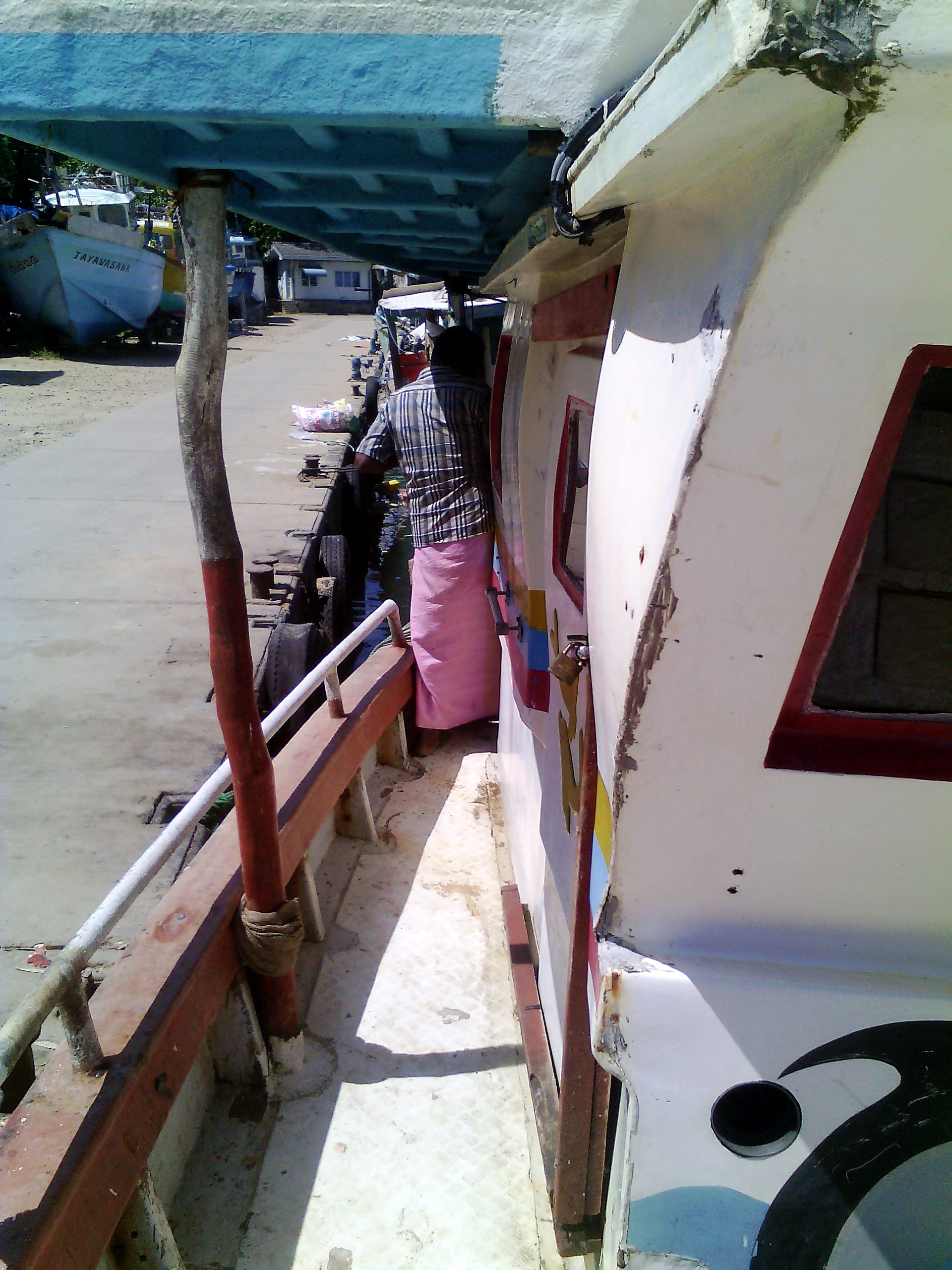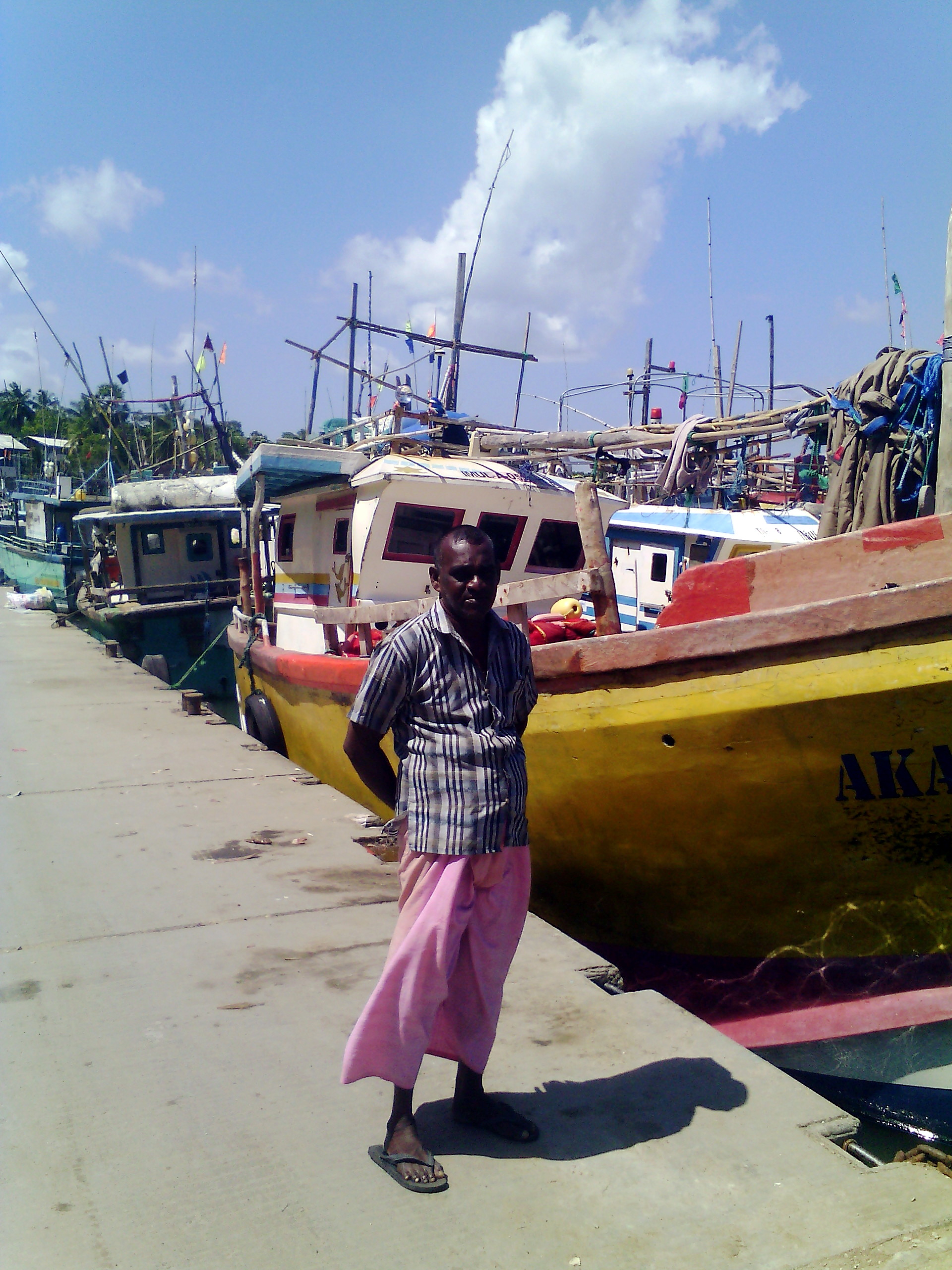 Das ist Tilan, ein Singhalese. Nach der Schule wurde er, wie viele seiner Freunde, Fischer. Ein Monat draußen, viel gefährliche Arbeit auf offener See und nur ein bisschen Schlaf in engen kleinen Kojen. Und dann zwei Wochen zu Hause bei Freunden und Familie.